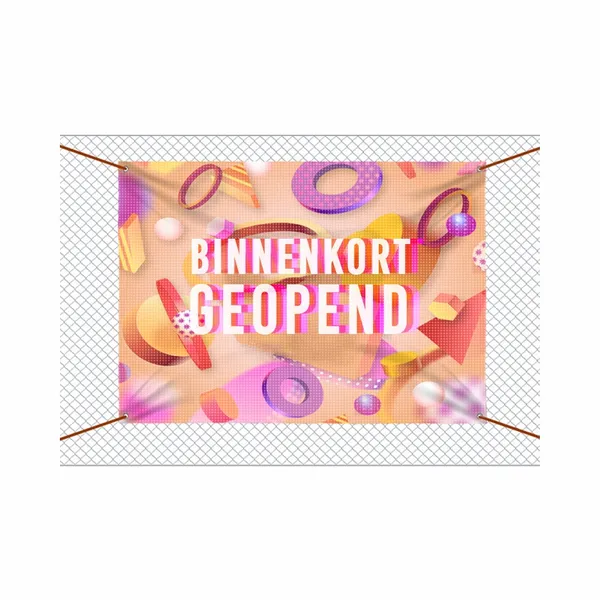 Vinyl mesh banners maken gebruik van gaaspatronen die wind doorlaten. Deze worden meestal opgehangen aan hekken met kettingen, maar kunnen in allerlei omgevingen, evenementen en sportlocaties worden gebruikt omdat ze veilig kunnen worden opgehangen met zeilringen of paalzakken.
