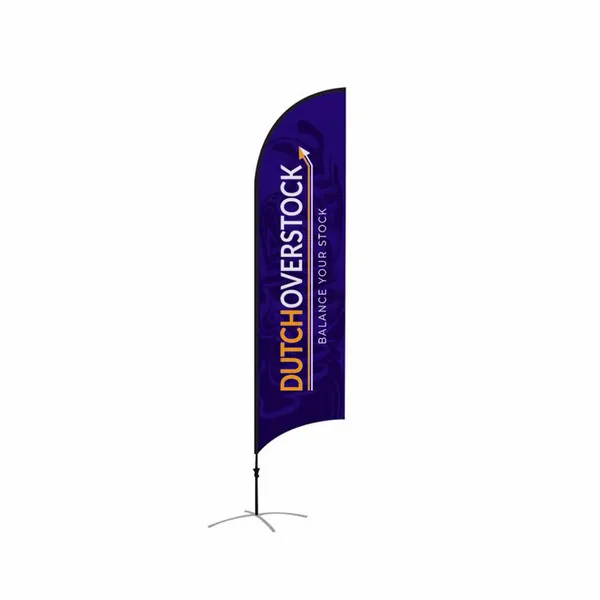 Onze Mesvormige Vlag zijn er in verschillende maten en je kunt ze ook met of zonder voet kopen. Je kunt kiezen uit drie opties: